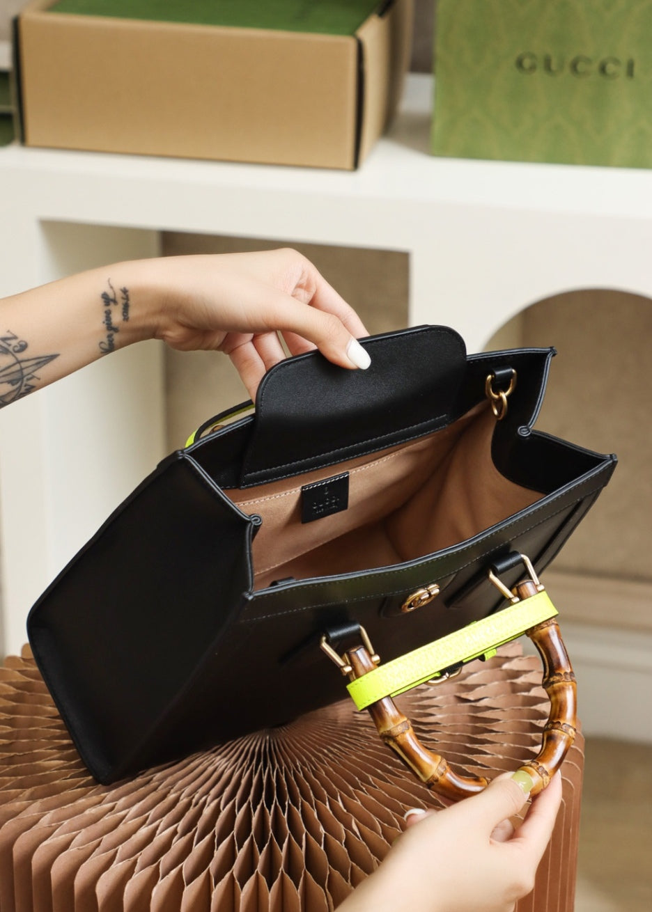 The Diana Bamboo series pays tribute to the classic 100th anniversary, bringing back Princess Diana's favorite classic bamboo design. The tote style combines retro elements with bamboo accents, and the actual product is truly stunning. The smaller size is more suitable for commuting, carried by hand or slung over the shoulder, effortlessly transitioning between daily life and work. It exudes a unique sense of fashion and is a classic and versatile accessory that is both individualistic and elegant. When paired with