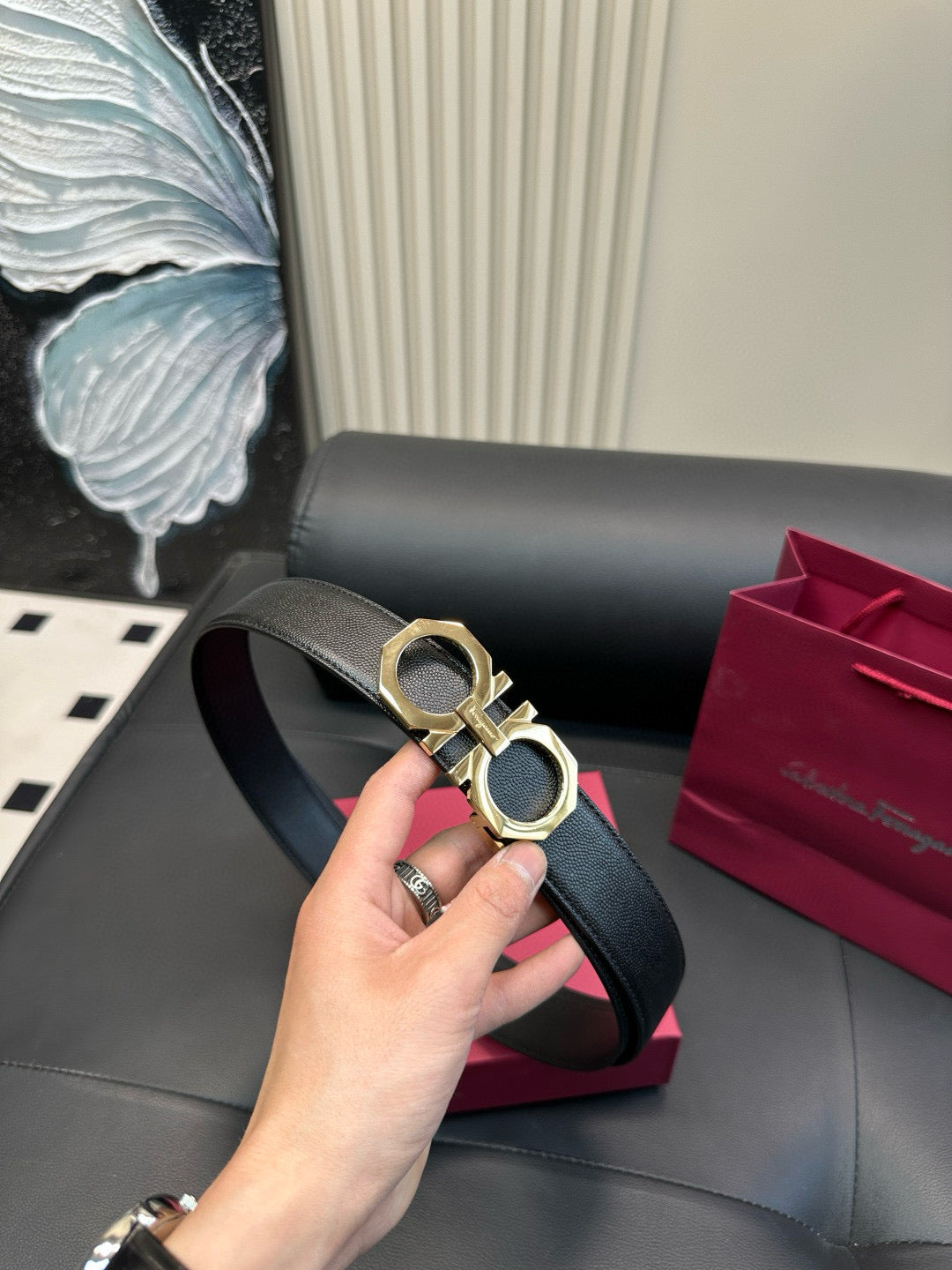 [Luxe]Ferragamo 8-sided polished steel buckle