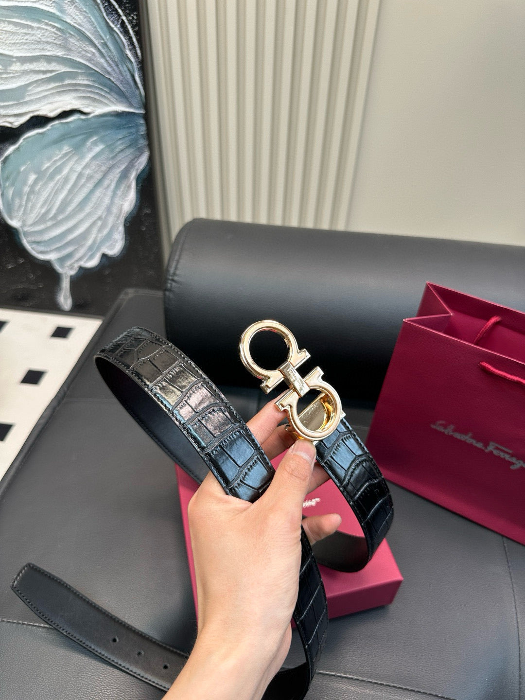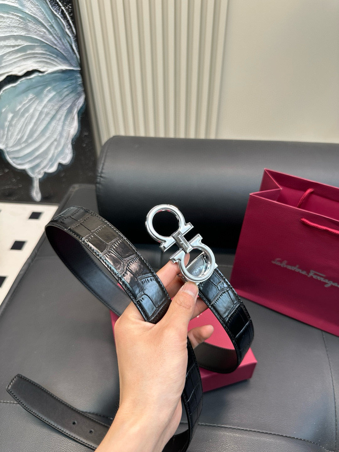 [Luxe]Ferragamo Crocodile skin pattern belt